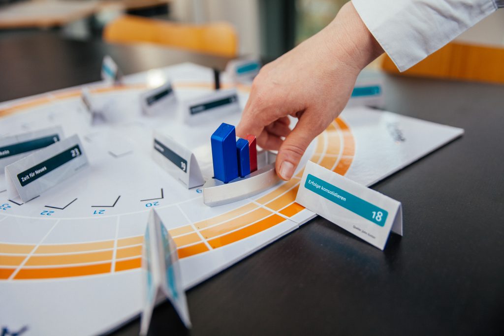 By visualizing the Cycle of Change and working with the physical game board, the program creates formats that: